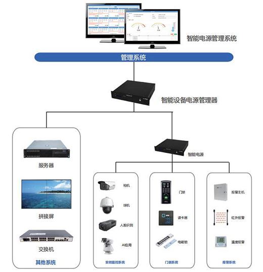 智能電源管理基于物聯網、云計算和大數據,分析針對用電設備進行遠程監控、集中式管理、安全性管理等遠程運維管理,對用電設備工作狀態、安全、使用情況等進行實時監測,為用戶提供及時、有效、準確、整的電壓、電流、電量等數據分析,有效提高用電效率、保障用電安全、節約維護人力,真正做到安全用電、穩定節能、智慧管理。