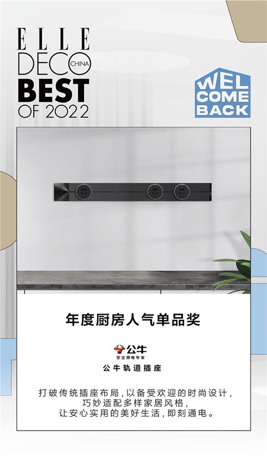 (公牛軌道插座榮獲ELLEDECO家居廊2022年“年度廚房人氣單品獎”)