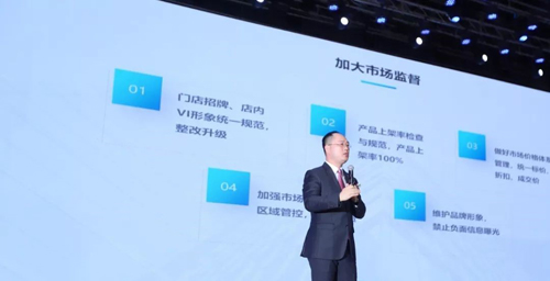 旺德府家居產業集團供應鏈管理中心總經理周軍先生在會議上從營銷的六大抓手、服務保障的四大利器、加強打假維權等多方面講解了多年以來的實戰營銷經驗。