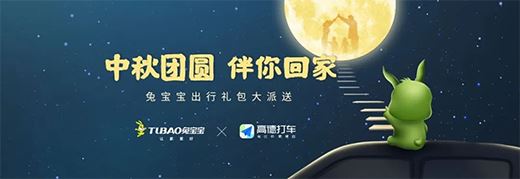 中秋正值闔家團圓之際,在外打拼的人皆紛紛歸家共享團圓時刻。就在剛剛過去的中秋佳節,兔寶寶結合現下流行的公共出行方式,聯合高德地圖app,以優惠派發的方式,助力千萬中秋“在路人”回家團圓。