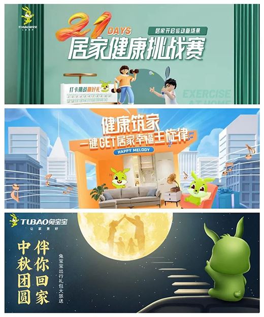 中秋期間,配合“中秋團圓 伴你回家”聯名推廣活動,兔寶寶在搜狐、天貓、騰訊、新浪、房天下等多個媒體平臺上線活動優惠畫面,多平臺搶占流量高地,進一步擴大兔寶寶中秋活動曝光量,輻射多層次及年齡段用戶,全方位提升兔寶寶品牌影響力及品牌高度。