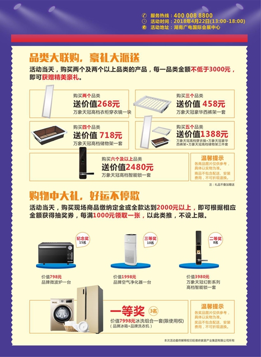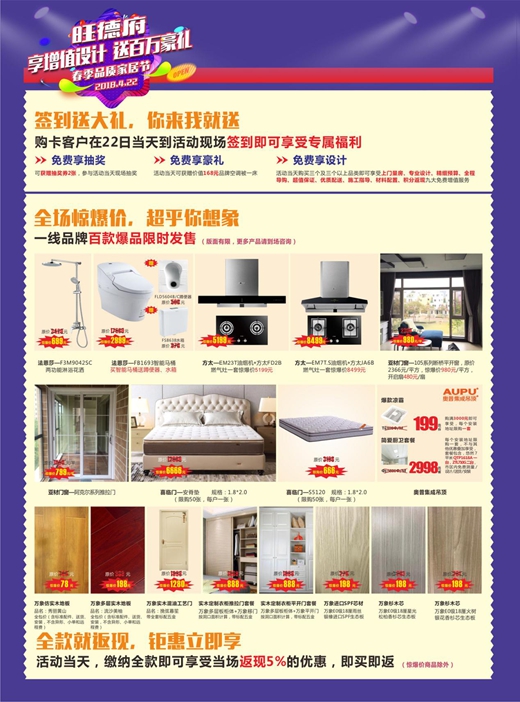 活動強(qiáng)強(qiáng)聯(lián)合,必將點燃四月長沙的熱情,溫婉的春天也會因為“旺德府春季品質(zhì)家居節(jié)”的到來,掀起了一輪又一輪的熱潮,消費者更加期待4月22日的早日到來,一起參與分享這場“享增值設(shè)計,送百萬豪禮”的盛宴。