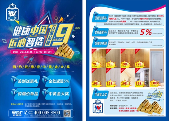 旺德府集團專注于建材行業,大力構建品牌核心差異化的同時,積極探索活動營銷新模式,把百姓“快樂安居、健康生活”作為己任,不斷創新經營,多元化發展,致力于成為健康美好產品的供應商和服務商,立足于消費者整體家居需求,不斷為消費者提供個性化增值服務,形成了一套完整的、獨具特色的活動模式,把高品質、低價格的產品,帶給消費者。4月22日,“2018旺德府春季品質家居節”隆重舉行;6月10日,“旺德府夏季品質家居節”精彩收官!