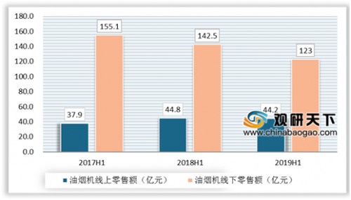 (2017-2019年H1我國油煙機線上線下零售額統(tǒng)計情況)