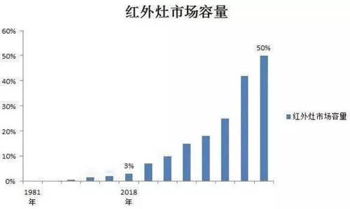 隨著新生代消費勢力的快速崛起,節能環保、科技時尚、智能便捷的高端廚衛產品形成了新的需求熱點。更值得關注的是,節能、低碳的紅外灶,越來越受到消費者青睞以及政府的重視和支持。目前紅外灶的市場銷量增速明顯高于普通的大氣式燃氣灶。據業內人士分析預估,紅外線灶的市場份額將從2018年的3%迅速擴張至50%,是廚電市場一個新的增長點,在日趨成熟飽和的廚衛市場中必定能開辟出一片藍海之地,穩占我國灶具行業將來的“半壁江山”。