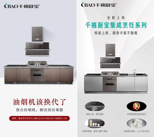 千禧廚寶集22年廚衛經驗之大成,在滿足消費者“智能、健康、環保”的普遍需求基礎上,融合功能與美學設計之差異化優勢,匠心打造出集煙機、灶具、消毒柜于一身的“集成烹飪系列”全新套裝臻品。準確把握市場商機,更先一步引領廚衛市場“新式集成藝術”的潮流發展,這便是千禧廚寶,一個走在行業前沿、致力于“讓幸福發生”的民族品牌。