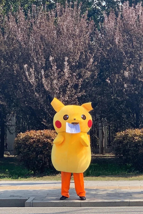 (市民扮演的“皮卡丘”在路口為醫療隊送行)