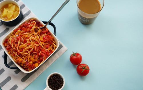 將洋蔥、蒜、番茄切碎炒熟,加入水熬成紅醬,后澆在煮熟并浸涼的意大利面上,便可完成色香味俱全的番茄意大利面。在這道美食中,番茄雖只是小小的配角,但也正因有了番茄的點綴,才讓整體口感變得更有層次。