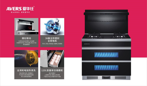 面對中國家庭普遍面積小的廚房空間,愛華仕注重集約化設計布局:善于將廚電和廚房裝修融為一體、將關聯廚具收納藏于一處;通過完善人性化體驗,幫助用戶獲得有效的安全保障、簡化操作步驟、減少餐前飯后的勞動煩擾;并結合現代廚房的審美理念,以提升節能減排技術、自動清洗油污、時尚優雅配色等方式,保持廚房環境的干凈整潔和低碳健康,處處為廚房氛圍“減負釋壓”。