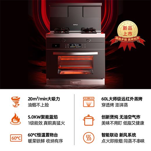 同時,蘇泊爾廚衛也為首次參戰618的集成灶進行了足夠的火力準備。MQ55雙翼系列蒸烤一體集成灶正是擔當此番大促的主力之一。MQ55雙翼系列集成灶搭載了遠紅外科技,通過高效遠紅外加熱方式,穿透烤、澎湃蒸、空氣炸、智能燉一“部”到位。這款萬元以內蒸烤一體集成灶的蒸烤箱內腔面積高達60L,可滿足八至十人份菜品,四層同烹,家庭聚餐、開派對可輕松應對,性價比堪稱“尖叫型”產品。