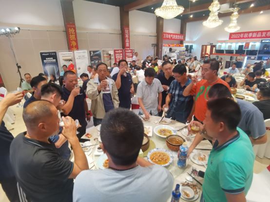 銀田廚電衛浴本次首場開盤會議得以圓滿成功,離不開這樣一群人:他們奔波勞碌,毫無怨言;他們不斷超越,勇攀高峰;他們是銀田總部與揚州嘯飛團隊,更是家人。在這場活動中,他們以智慧指引方向,以豁達引領團隊,為2022年銀田廚電衛浴品牌的蝶變努力奮戰,創造更多的奇跡,開辟更多的可能。在慶功晚宴上,他們一起舉杯共飲,是對自己努力終有收獲的肯定,更是對所有辛勤付出者的感謝。