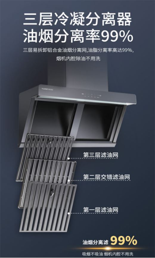樂鈴公司推出的“深度除油”吸油煙機,采用了如下黑科技: