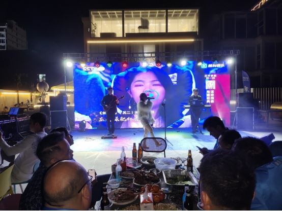 一陣陣的香味伴著海風吹來,經歷了3個多小時戰斗的健湃家人深受誘惑,不由自主地尋著香味來到海邊,兩只烤得滋滋流油的全羊還在烤爐里緩緩的翻轉著。巨大的電子銀幕、時尚年輕的樂隊、絢麗的燈光、動聽的音樂、熊熊的篝火、啤酒、海鮮、燒烤,瞬間把健湃家人的能量拉滿!在美食、美酒、歌聲、歡呼聲中,把《革新·大商-健湃2024年戰略布局大會》畫上了圓滿的句號!所有家人有目標、有方向、有計劃、有方法的向2024年全速前進!