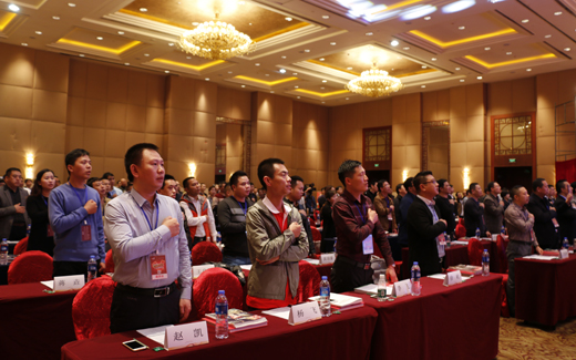 經銷商大會在全體經銷商高亢而洪亮的歌聲中,在精彩、大氣宏偉的企業宣傳片中隆重拉開帷幕。大會上首先由超人董事長羅子健先生登臺亮相,并做關于2017超人整體規劃及方向演講。