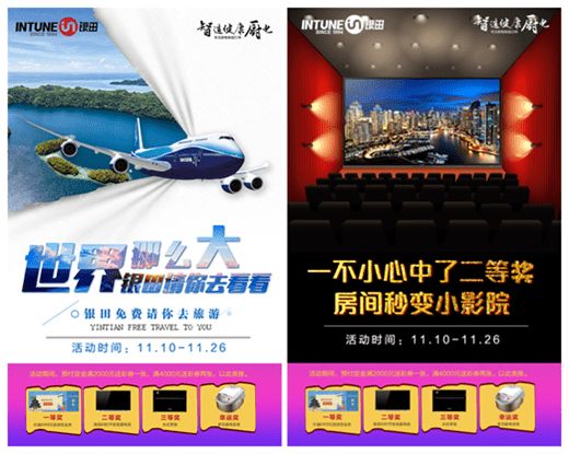 活動期間,到全國各大體驗店預付定金滿2000元即送彩券一張,滿4000元送彩券兩張,以此類推,多付多抽獎,消費越給力,中獎幾率就越大。一等獎二等獎中獎者將得到價值6999元旅游現金券,讓銀田為你實現“世界那么大,送你去看看”的愿望;二等獎中獎者即可獲得60寸平板液晶電視,讓您一不小心就擁有“家庭小影院”;三等獎的電蒸箱和幸運獎的多功能電飯煲,也能讓你輕輕松松就能嘗到各類佳肴美食,讓家變成一個美食王國。