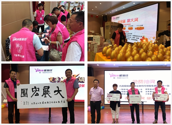 由于總部的大力扶持,現(xiàn)場新老家人們都對“雅麗詩”品牌信心百倍!爭先回款訂貨,將雅麗詩新品收入麾下。而雅麗詩也為所有家人們準備了各項豪禮大獎!雅麗詩國內(nèi)營銷銷售部華中區(qū)域經(jīng)理何波先生上臺宣講雅麗詩會議政策、訂貨手續(xù)之余更是開展一系列的現(xiàn)場搖獎以及書法家現(xiàn)場書法繪畫贈送,讓現(xiàn)場再一次高潮迭起。