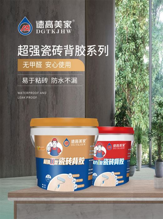 旗下產(chǎn)品德高美家超強(qiáng)瓷磚背膠系列,被譽(yù)為“瓷磚空鼓脫落的克星”。系列產(chǎn)品分為兩大產(chǎn)品——“強(qiáng)力Ⅰ型瓷磚背膠”和“超強(qiáng)Ⅱ型瓷磚背膠”,具有超強(qiáng)的粘接性、抗酸堿、防滲水的能力,抗老化性,可在瓷磚與瓷磚粘結(jié)材料之間架起一道牢固的“橋架”,沒有硬力破壞,不會脫落。