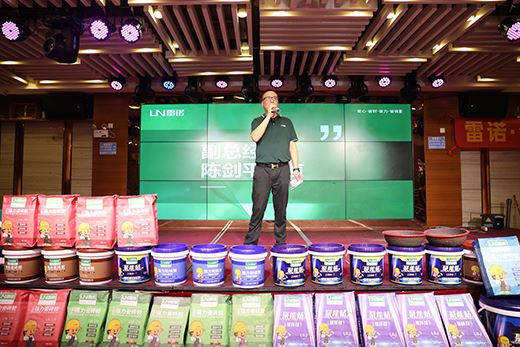 面對未來的市場,雷諾將繼續保持高品質、高質量的服務,以用戶為核心,以市場為主導,為合作伙伴和客戶做好保障,創造雷諾瓷磚膠的下一個輝煌!為使肇慶區域的意向合作伙伴對“雷諾瓷磚膠”品牌有更深刻的了解,并將“雷諾瓷磚膠”品牌的推廣大計傳遞給現場的每一位來賓,雷諾副總經理陳劍平先生為在座各位解析了當下建材輔料市場的發展前景,剖析了當前終端銷售面臨的困境。陳總指出,在營銷方式層出不窮的今天,終端營銷也要“轉型升級”,要緊隨時代潮流。為此,雷諾通過打造全方位運營幫扶體系,多角度賦能終端門店,助力加盟伙伴,讓加盟伙伴在未來的行業市場中站穩腳。