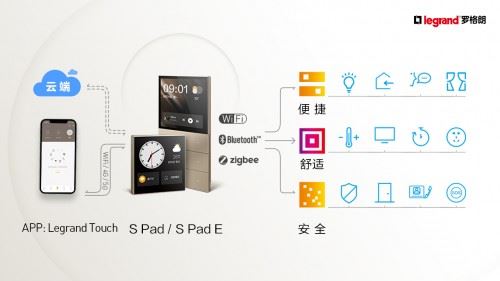 羅格朗逸景TOUCH智能家居采用互聯(lián)互通的ZigBee 3.0無線通訊協(xié)議,核心產(chǎn)品SPad / SPad E 內(nèi)置強大的智能網(wǎng)關(guān),同時兼容ZigBee / Wi-Fi / Bluetooth 等無線通訊協(xié)議,使智能家居不再是孤立的智能單品或是雜亂的組合。