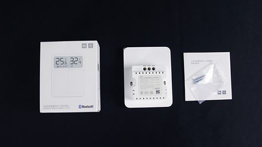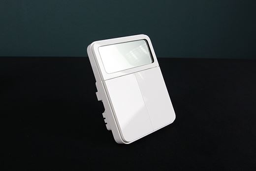 電科技手上的這款是雙開單控版,可以控制兩個設備。開關頂部的顯示屏可以查看時間、日期以及房間的溫濕度情況。