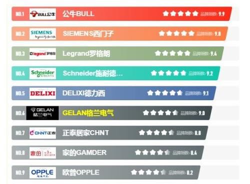 所以,為了保證用電的安全、家庭的安全,我們在選擇開關插座時盡量要選擇一些大品牌的產品,其質量是有一定的保障的,像公牛、西門子、德力西、正泰和施耐德等品牌的開關插座質量都挺不錯的,具體可以參考下面的排行版: