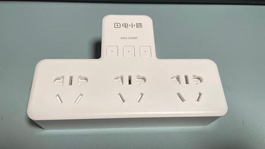 電小酷智能插座外觀為白色簡約風格,采用的是V0級防火材質,750度耐高溫阻燃。這款插座有三組獨立插座,分別由三個分控開關控制,開關上還有電源指示燈,開關狀態一目了然。