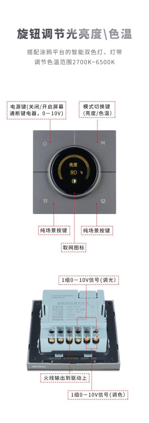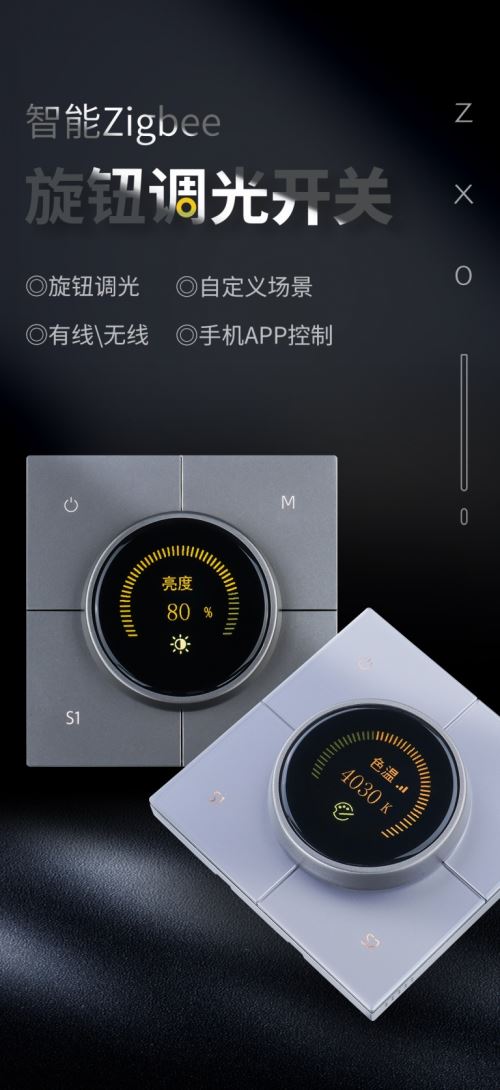 雅點新品——智能旋鈕調光開關,是具備智能燈亮度與色溫調節功能的產品。