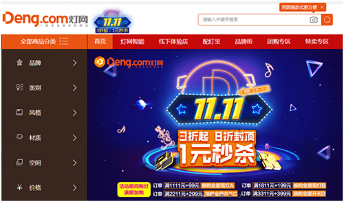 2019年11月8日,Deng.com燈網隆重拉開“第四屆雙11狂歡節”序幕,集結全平臺的線上線下力量,傾力打造一場鉅惠活動。且看“1元秒殺”、“全場3折起,8折封頂”等等項目,便讓每一位光臨的客戶感受到暖暖的誠意!