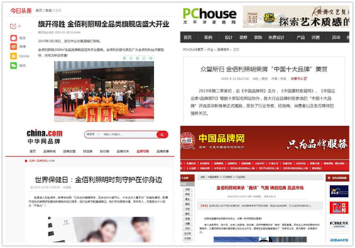2019年4月,最新一期的“中國十大品牌”評選活動最終結果對外發布:金佰利照明在產品質量、服務水平、品牌影響力等考核層面均名列前茅,特授予“中國十大現代家居照明品牌”榮譽稱號。