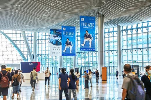 據悉,這是月影家居首次參與深圳家具展,從南登入大廳進入展館可看到月影品牌強大的宣傳勢能!