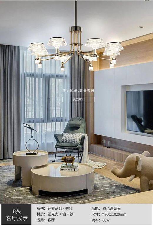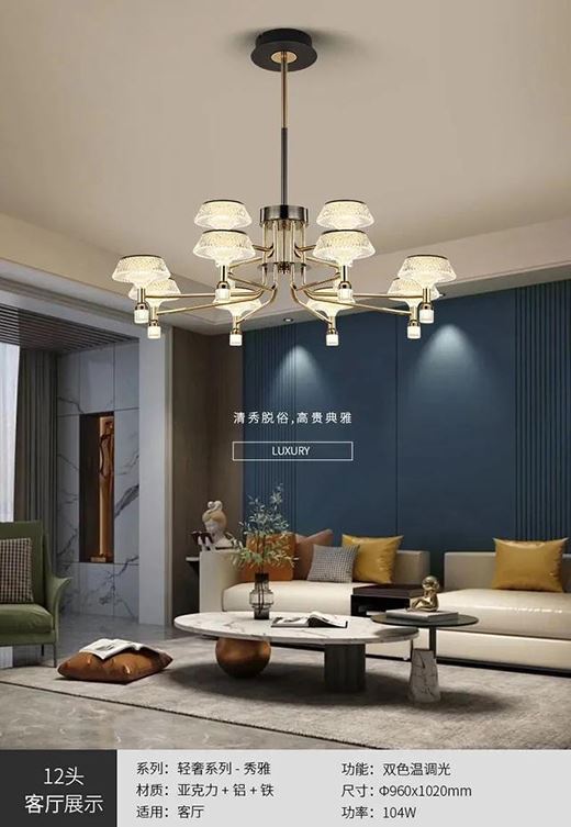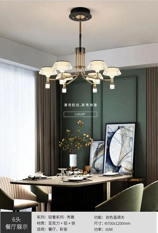 區別于傳統的輕奢吊燈,燈臂設計更顯大氣