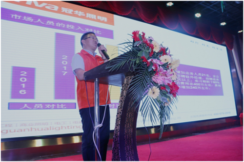 經銷商、導購員只有對一個產品有非常深入的了解,才能更好地向你的客戶介紹產品,把該款產品的亮點告訴你的客戶來吸引他們的購買。會議中,冠華照明產品技術總監上臺進行了《產品知識講解暨新品推薦》的專題演講,向在場來賓大體介紹了冠華照明產品的性能、外觀、設計、技術等方面的亮點之處,讓在場嘉賓頗有收獲。而新品推薦環節更是讓現場氣氛高漲,花樣繁多的冠華照明新品讓在場嘉賓大開眼界、贊嘆不已!