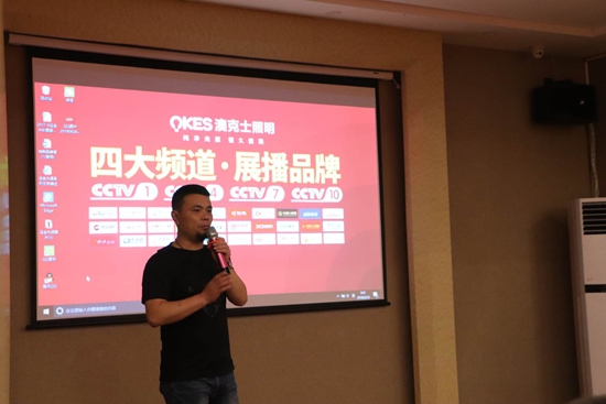 首先,澳克士照明貴州服務中心總經理曾國君先生上臺發表重要講話,他對遠道而來的各位嘉賓與經銷商家人們表示熱烈的歡迎與誠摯的感謝,因為有了大家的鼎力支持,才促成本次會議的順利召開!