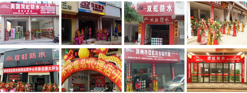 目前雙虹品牌擁有聚合物系列、干粉砂漿系列、聚氨酯系列、補漏系列、卷材系列以及路橋防水系列,集防水、保溫、抗風壓防護、景觀美化等功能一體化,具備節省耗材、防滲漏能力強、使用壽命長等優勢;并在全國300多個城市布局了1200多家加盟門店,規模實力雄厚,終端市場擴張速度驚人。