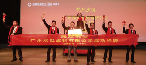 瞄準市場商機,奮力擔當領航者——廣州雙虹建材有限公司,秉持“讓人類建筑滴水不漏”的宏偉目標,致力于綠色環保型防水修繕類材料的生產研發、建筑補漏工藝的創新研究。雙虹建材精耕細作十二載,以創新科技、高標準、高質量、完善修繕服務方案締造了閃耀的名片,已于2015年成功在新三板掛牌上市(股票名稱:雙虹防水,證券代碼:666157)。