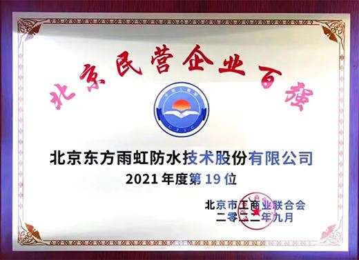此次上榜“2021年度北京民營企業百強”榜單,正是東方雨虹踐行新發展理念、履行社會責任、牢固穩健經營的重要回應。