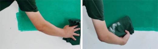 隨后,我們在涂刷膩子后的墻面上涂刷F102綠金甲加固劑,用深色抹布在涂刷加固劑的區域與未涂刷加固劑的墻面擦拭,發現涂刷了F102綠金甲加固劑之處,沒有墻面掉粉現象,抹布在擦拭后還能維持原色,而未涂刷加固劑的墻面經抹布擦拭后出現掉粉,更加充分說明F102綠金甲加固劑對基面有較強封閉性,有效預防空鼓粉化等問題。
