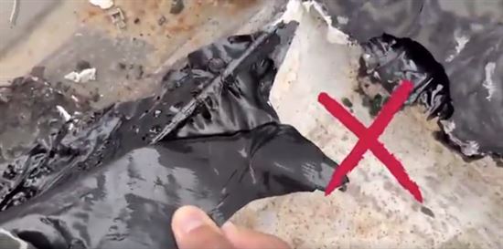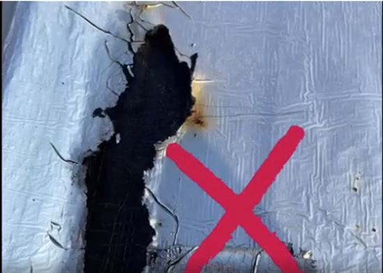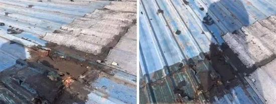 揭開部位比未使用SBS進行維修的部位損壞的要嚴重的多,這是因為不管是熱熔法,還是冷粘法,SBS都與彩鋼板無法緊密粘接在一起。