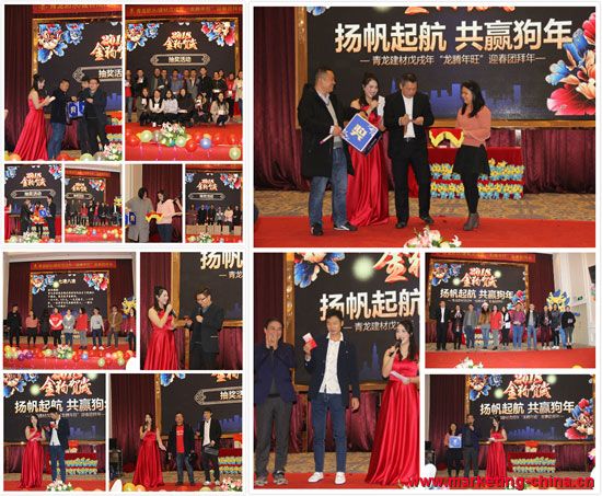 2018年2月7日,青龍建材中山公司2017年年終總結表彰大會及2018迎新年會在中山維出納國際酒店隆重舉行,青龍董事長宋敦清、營銷總監(jiān)賀金龍、招商總監(jiān)周炳陽、家裝事業(yè)部總經(jīng)理于超軍、質(zhì)量總監(jiān)張科、中山工廠廠長劉文學、方文軍以及青龍中山公司、港口工廠、三角工廠全體員工參加了盛會。晚會還現(xiàn)場連線了青龍海南環(huán)球100GRC工廠和馬來西亞森林城市防水工地。晚會繼往開來,精彩紛呈,其樂融融,取得了圓滿的成功!