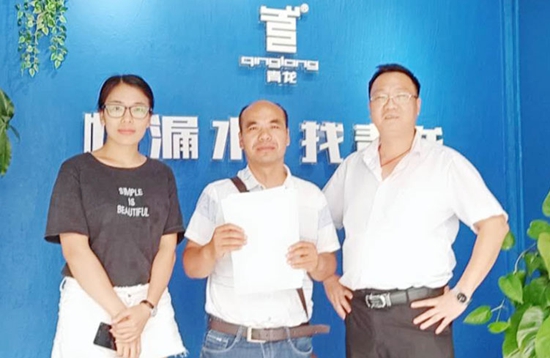 2018年8月6日,在貴州凱里從事防水補漏10多年的楊老板,經過對青龍中山家裝防水體驗中心實地考察和體驗后,表示青龍家裝防水就是他一直在尋找的防水堵漏品牌,是幫助他開啟凱里防水堵漏市場的金鑰匙,果斷簽約,成為青龍凱里家裝防水代理商。