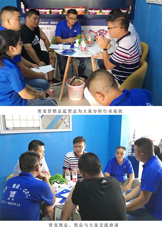 開業期間,周總還特別組織召開了青龍家裝防水補漏新產品發布會。青龍賀總近距離與大家分析、把脈防水堵漏領域現狀,并就近年防水市場新機遇、新產品、新技術、新理念進行了分享。他強調,2018年是進入建筑修繕堵漏領域最好的時機,先進入將獲得更多的優勢,然后,簡單介紹青龍特色維修堵漏產品的優勢,為大家指明了方向,也增強了大家做建筑修繕的信心。