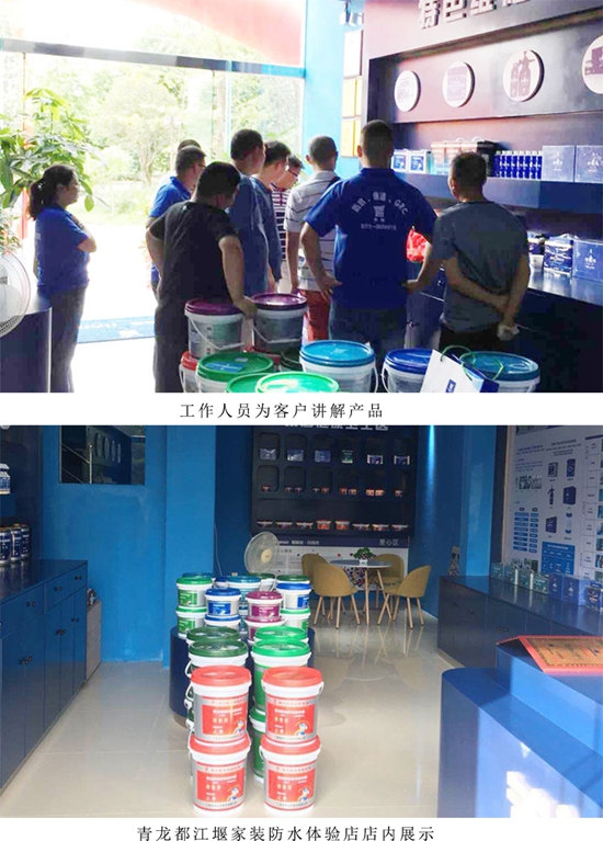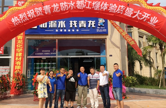 8月18日,經過一番精心裝修和前期籌備,青龍家裝防水都江堰體驗店在萬眾矚目下盛大開業,代理商周先鵬先生成功將防水業務拓展,在工程防水業務的基礎上再添家裝堵漏。