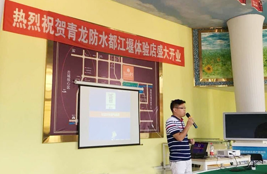 開業儀式上,青龍公司營銷總監賀金龍,青龍眉山代理商鄭總,都江堰煜瑞裝飾公司楊總、熊總,都江堰鼎森裝飾公司楊總、王經理、盧經理,都江堰偉星管業經銷商張總,都江堰資深防水專家陳總,都江堰君威物業公司康總以及部分業主客戶等50余人共同見證了體驗店開業喜慶的場景。
