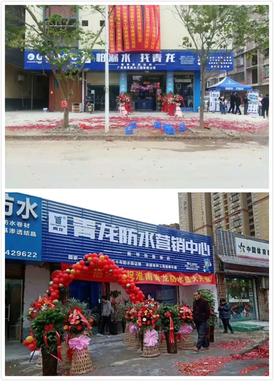 12月5日,青龍家裝防水安徽淮南體驗店和廣西武鳴體驗店盛大開業。