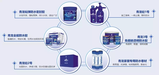 青龍防水,全方位業務,產品涵蓋防水卷材、防水涂料、剛性防水材料、密封堵漏材料、建筑加固補強材料 、保溫隔熱材料、干混砂漿等,產品系列齊全。尤其是青龍6款補漏新品,可解決99%家居防漏水問題。