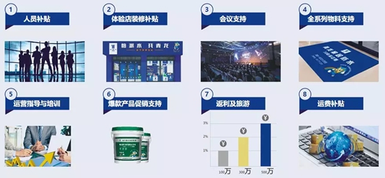 青龍公司綜合考慮代理商的實際情況,在家裝行業內率先實施了零加盟,為代理商量身定作“3+2”等招商政策,使代理商朋友既不會形成資金積壓,又能順暢擴大銷售。并且在店面裝修、廣告投入、活動推廣等需要資金投入的方面都會有相應的費用支持,幫助客戶減少資金投入,增加創收。加盟青龍已成為代理商們投資家裝防水補漏的明智選擇!