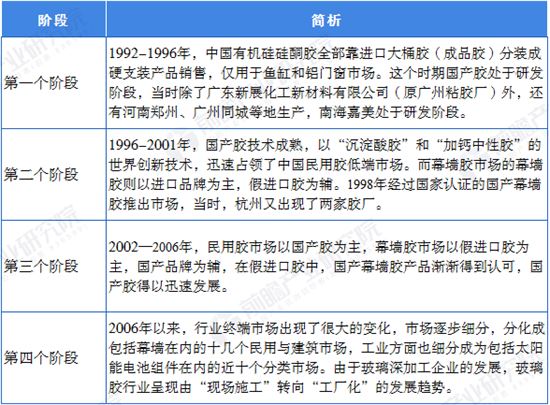 圖表一:中國硅酮密封膠行業發展歷程