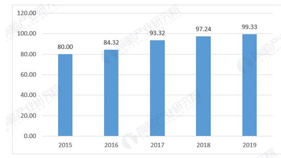 圖表四:2015-2019年我國建筑用硅酮密封膠產值走勢(單位:億元)