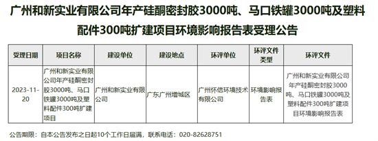 11月20日,廣州和新實業有限公司的擴建項目環境影響報告表被正式受理。該項目計劃年產硅酮密封膠3000噸、馬口鐵罐3000噸以及塑料配件300噸。以下是項目的概況介紹。