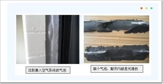 膠縫里面的墊桿一般都選用閉孔型高發泡的聚乙烯泡沫棒,在放置時由于不當擠壓,造成內部氣囊破裂,釋放出空氣,剛注完膠時會出現有氣泡隆起或是有鼓起的外觀。